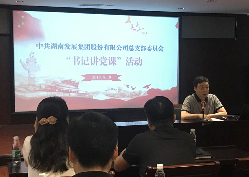 2018年5月18日下午,根據(jù)湖南省國(guó)資委系統(tǒng)“千名書記講黨課”活動(dòng)部署,公司黨總支開展了以“學(xué)習(xí)貫徹習(xí)近平新時(shí)代中國(guó)特色社會(huì)主義思想和黨的十九大精神”為主題的支部書記集中講黨課活動(dòng)。黨總支書記、總部直屬三個(gè)支部及湖南發(fā)展僑亞黨支部書記分別為大家上了一節(jié)黨課。本次黨課活動(dòng)由公司黨總支委員、監(jiān)事會(huì)主席黃志丹主持,總部及湖南發(fā)展僑亞30余名黨員參加了學(xué)習(xí)。